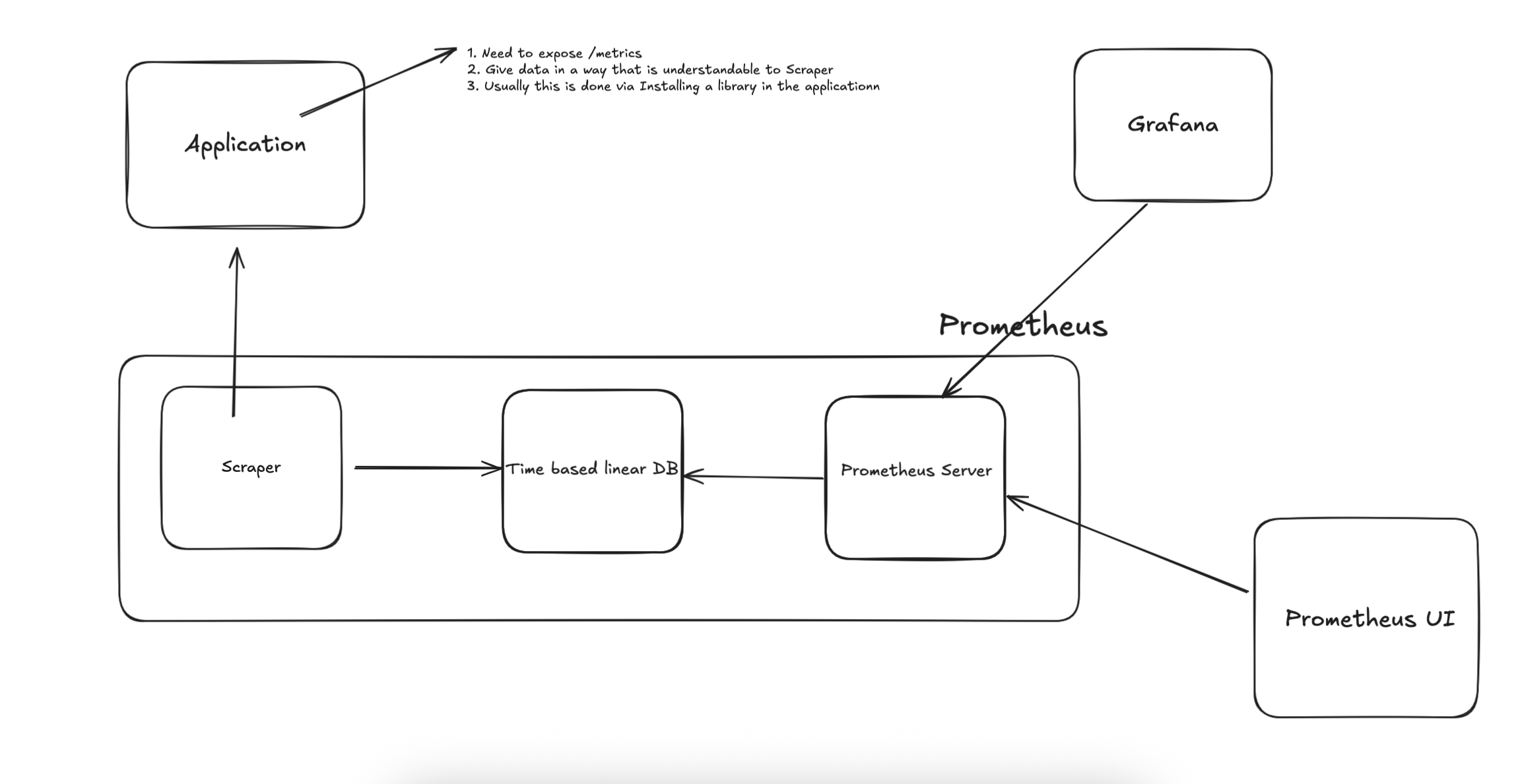 After setting up these components, I exposed an endpoint on the server for a scraper to collect metrics data. The scraper gathers this data and pushes it to the Prometheus server. From there, the server makes these metrics available for anyone interested in consuming the information, whether through the Prometheus web UI or visualization tools like Grafana. This setup enables real-time monitoring and valuable insights into the health and performance of the Kubernetes cluster.